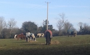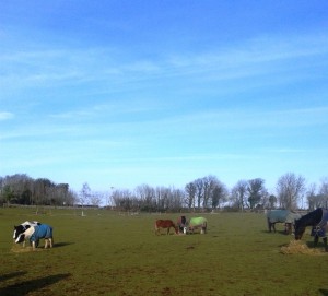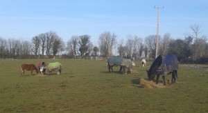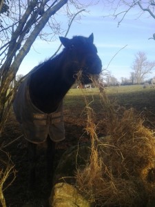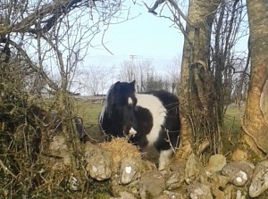 Here are a few photos of the gang enjoying their hay without a puff of wind or drop of rain, hail, sleet or snow ![]()