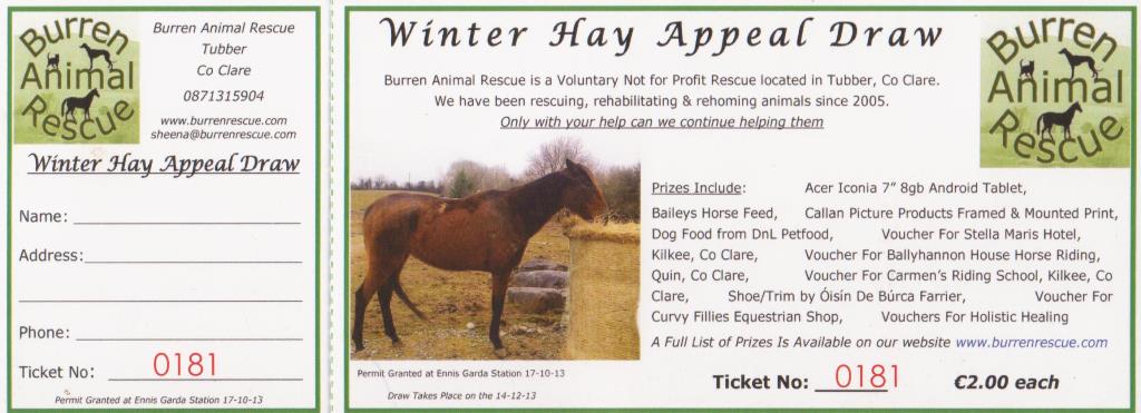 Winter Hay Appeal Draw Tickets 2013